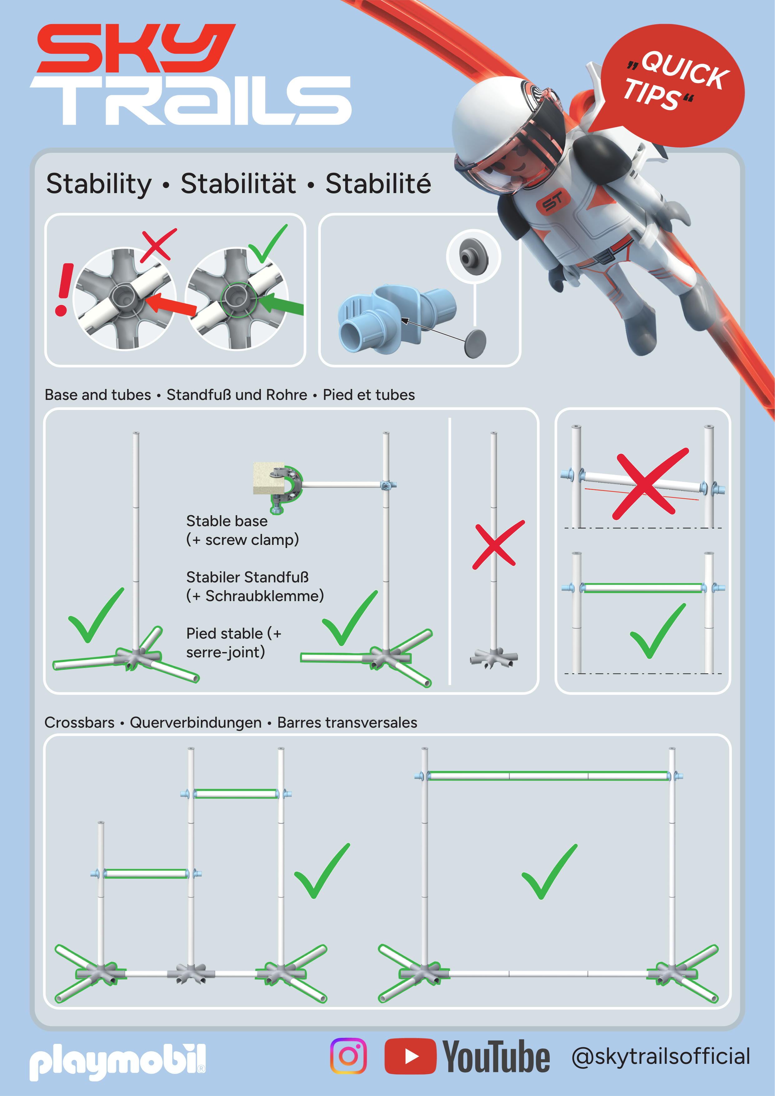 Stabilité: L’Air Lift doit être solidement intégré à ta piste et ne pas rester libre dans la pièce. Utilise nos conseils de stabilité et ajoute des barres transversales pour un maintien supplémentaire.